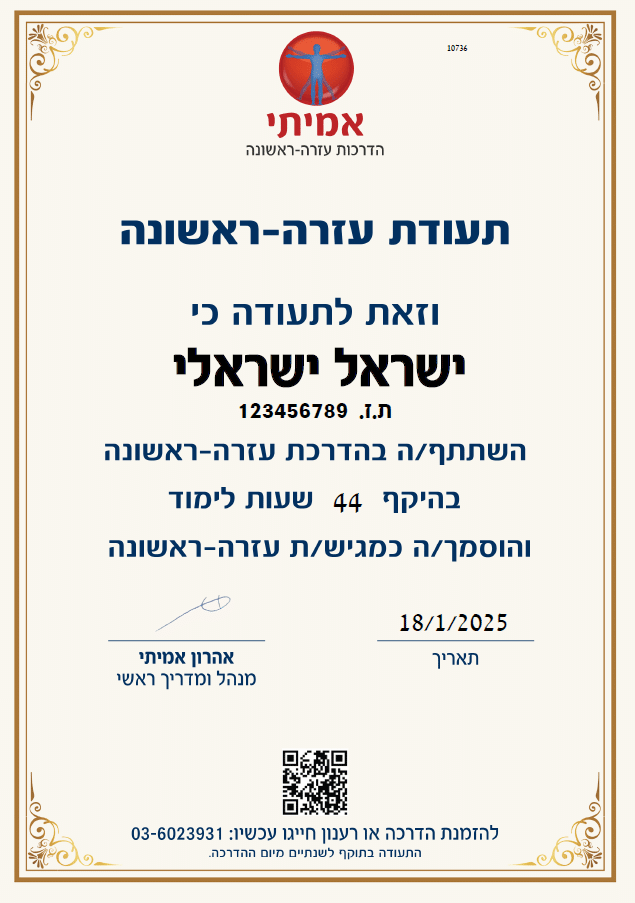 אמיתי עזרה-ראשונה הינו מרכז הדרכה הפועל משנת 2000 ועוסק בהדרכות וקורסי עזרה-ראשונה והחייאה למאות לקוחות בכל רחבי הארץ. מיום הקמתו הודרכו והוכשרו על-ידי אמיתי עזרה-ראשונה למעלה מעשרת אלפים חניכים במאות קורסים!