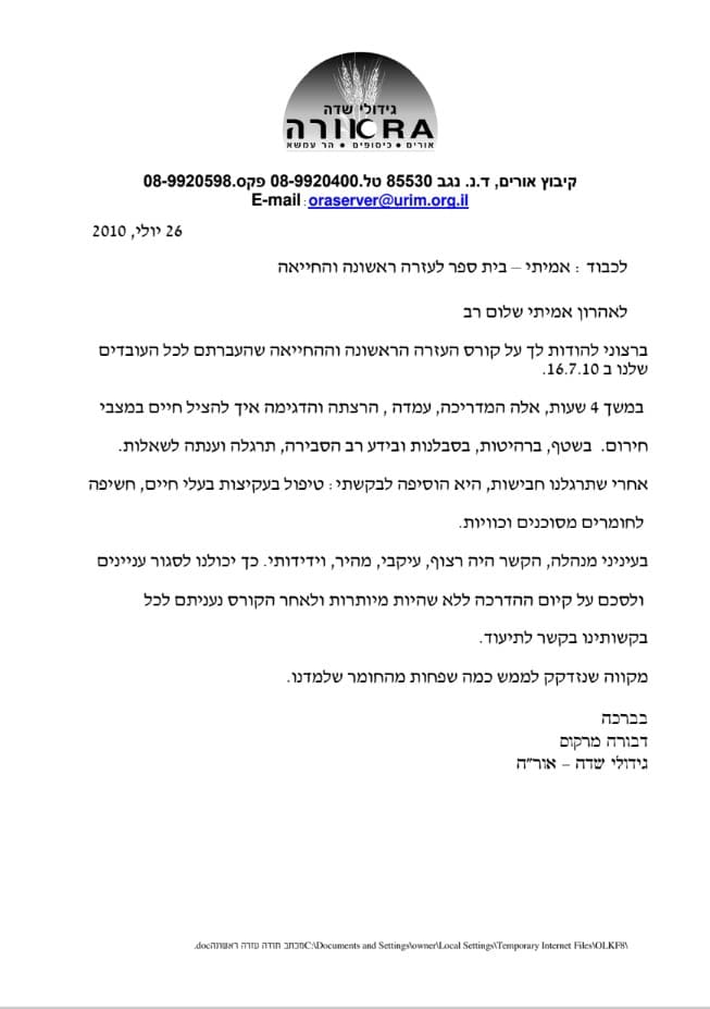 "אין הנחתום מעיד על עיסתו". לקוחותינו בחרו להעלות על הכתב את התרשמותם מהדרכת העזרה-ראשונה שהעברנו להם, רשות הדיבור ללקוחות: